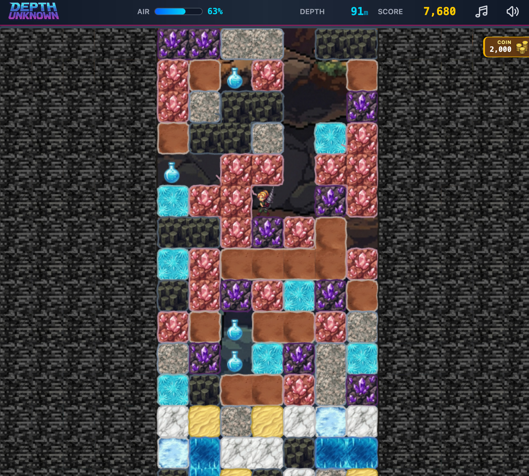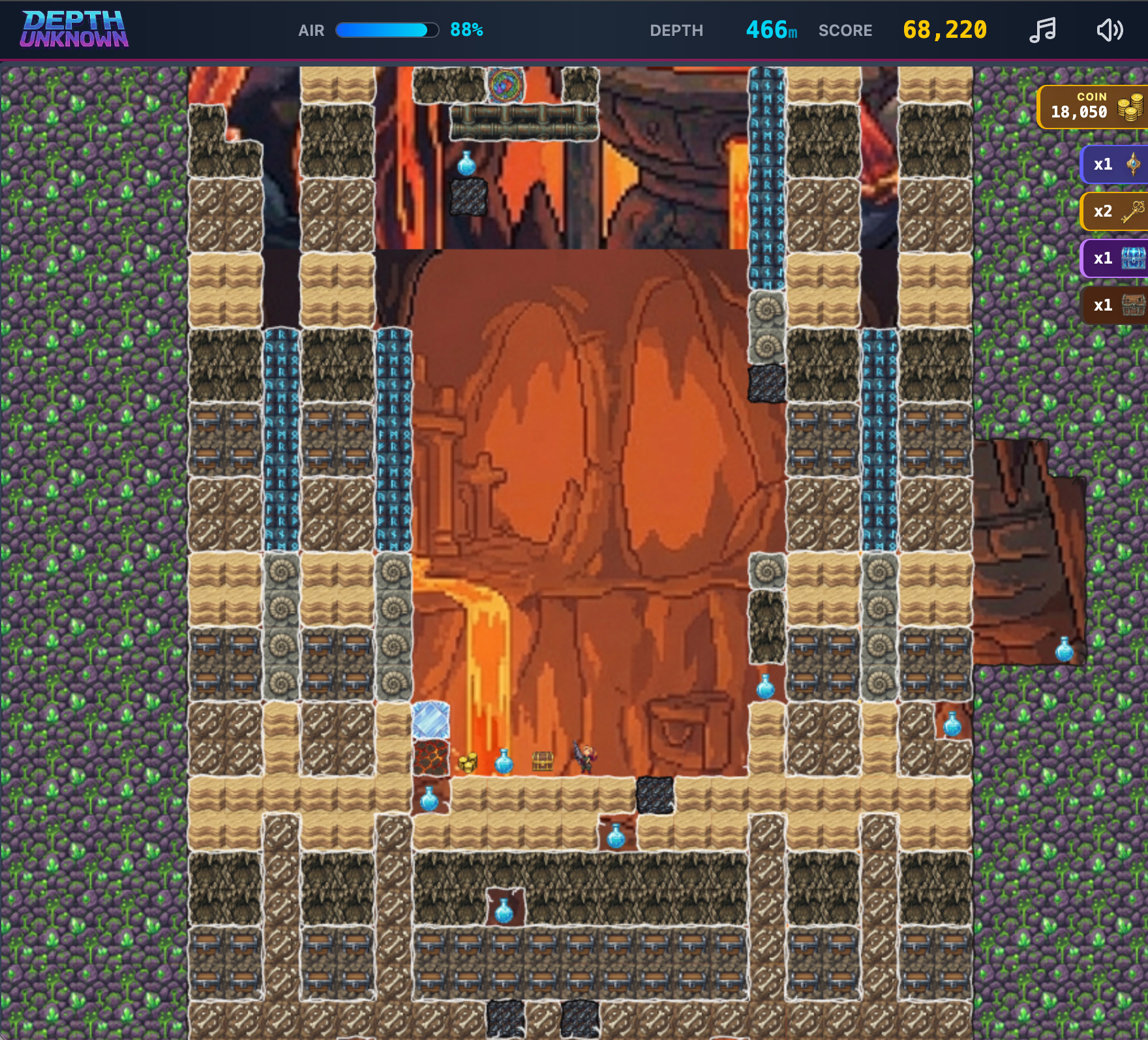 *Driller* is a fast-paced arcade digging game where your only goal is to go deeper. Manage your dwindling air supply, avoid crushing blocks, and collect treasures in an endless subterranean world.